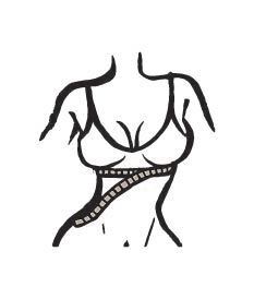 Find your most accurate measurement by wearing a wired, non-padded bra. Snugly place the measuring tape around your back and directly under your bust, where the band of your bra sits. Make sure the measuring tape is parallel to the floor. If someone else is measuring you, keep your arms by your side. Exhale, pull the measuring tape snug, and record your measurement.